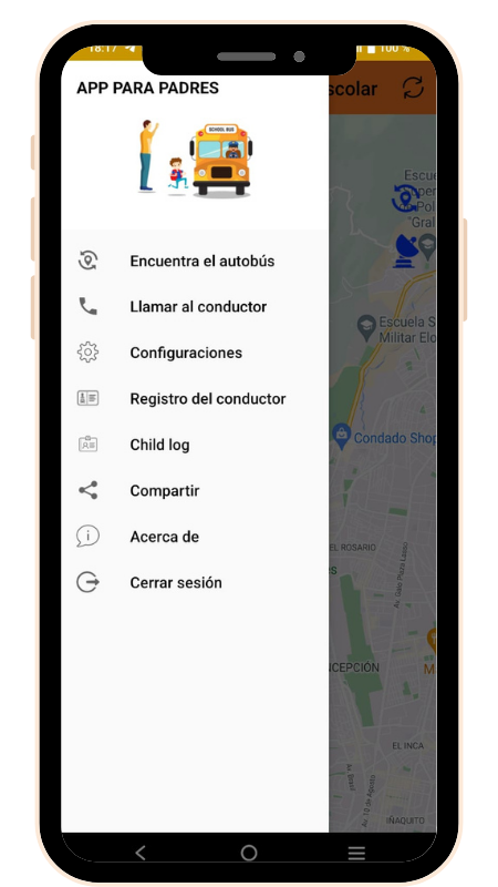 La aplicación proporciona actualizaciones en tiempo real sobre la ubicación del autobús escolar de sus hijos, permitiendo a los padres saber exactamente dónde se encuentra el autobús en cualquier momento.